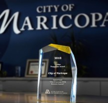 The City of Maricopa Economic Development Department has received the 2018 Golden Prospector Award from the Arizona Association for Economic Development (AAED).
