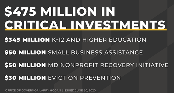 Governor Hogan of Maryland Announces $190 Million in COVID-19 Relief for Small Businesses, Higher Education, and Nonprofit Organizations