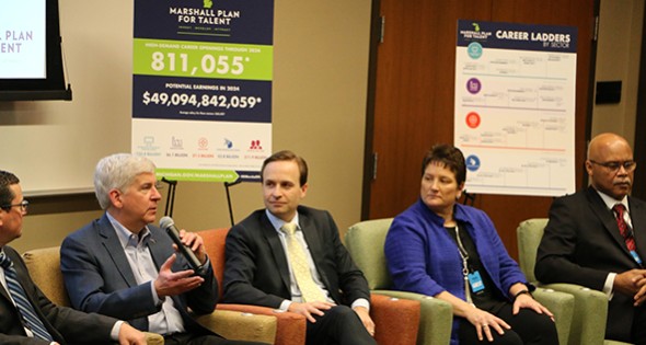 In February, Michigan Governor Rick Snyder presented the Marshall Plan for Talent to make dramatic changes to how the state prepares people for 21st century economy careers. The plan brings together education and business to transform Michigan’s talent pipeline and redesign the way the state invests in, develops and attracts talent, focusing on lifelong learning. Understanding that the demand for talented workers in dynamic fields such as IT and computer science, manufacturing, healthcare and other Professional Trades will continue to grow, the plan aims to prepare Michiganders to fill the 811,000 high-wage, high-demand job openings in Michigan through 2024.
