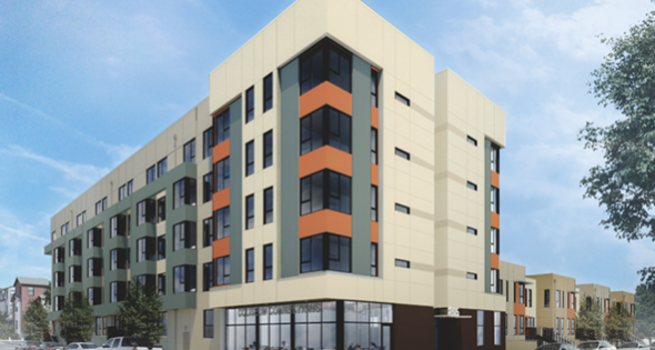 The City of Oakland and BART have been the primary sponsors of this project under the leadership of Council Member Larry Reid and BART Director Robert Raburn. UrbanCore has secured a $29 million construction loan commitment from Chase Bank, $12 million from the City of Oakland, $1.25 million in subordinate debt from Commonwealth Multi-Family Housing Corp., $10 million from the State AHSC program, $9.7 million in tax credit equity from the Royal Bank of Canada (RBC), and the final piece – $2.5 million from the County to move the project forward. The project is one of the few truly mixed-income transactions in the State with 50% or 55 of the units that will be market rate units with rents of $1,900 – $2,400 that are affordable for households earning 80% – 120% of Area Media Income (AMI), and 55% of 55 units with affordable rents of $1,100 – $1,600 that are affordable at 50-60% of AMI. UrbanCore has also secured a HUNT Mortgage/Freddie Mac $16.4 million permanent loan for the property. The proposed project consists of a 5-story building fronting Snell Street at the corner of 71st Avenue (Building-A) accommodating 66 one and two bedroom flats, and 44 two-story townhome units on the eastern portion of the site, grouped in three separate buildings. Eighty-six (86) residential parking spaces (including 2 car share spaces) are provided in a partially below grade structure located approximately 5’ below sidewalk level. Perimeter townhouse units are setback 10 feet from 70th and 71st Street with shared entry stoops connecting to the sidewalk level. The project has been designed to include modular construction as a means of reducing the construction schedule and costs.