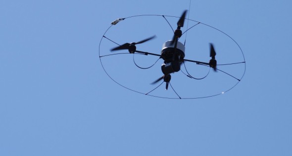 Caption: An AirRobot AR100-B UAS owned by the Georgia Tech Research Institute flies in a demonstration in Georgia. Photo: AUVSI